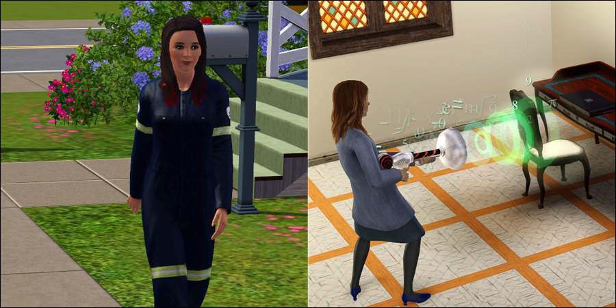 Whew! That was a handful of careers there! Keep in mind, the above is certainly not a full list of careers or jobs in the Simverse. There are teachers (Tarma), interior decorators (Zoki), bookshop owners (Sophia), fitting room guards (Arielle), blue light special designators (Ryan G.), and students, musicians, and actors. I could not possibly fit them all, and there was no point taking pictures of things I couldn't see. But fear not, for the other Sims will certainly find themselves back on the column sooner than you can imagine!