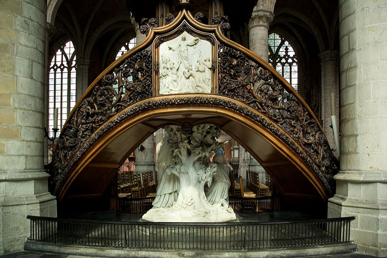 My favorite embellishment, however, was the ornate pulpit, carved from white marble and dark wood. I think it shows Jesus (rising from the dead?), but the only information I found on the sculpture was in Dutch. And I don't like Dutch enough to attempt to translate it.